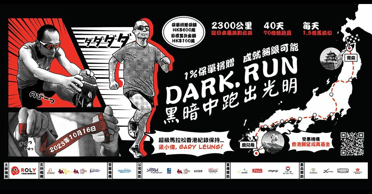 Gary is now inviting ALL Hong Kong citizens to join the Dark Run virtual run. Even if you cannot travel to Japan, you can run with Gary every day during his 40-day journey, contributing to the good cause together. The registration fee, after deducting the cost, will be donated to Make-A-Wish Hong Kong. Participants will also have the opportunity to win a set of round-trip air tickets to Japan.